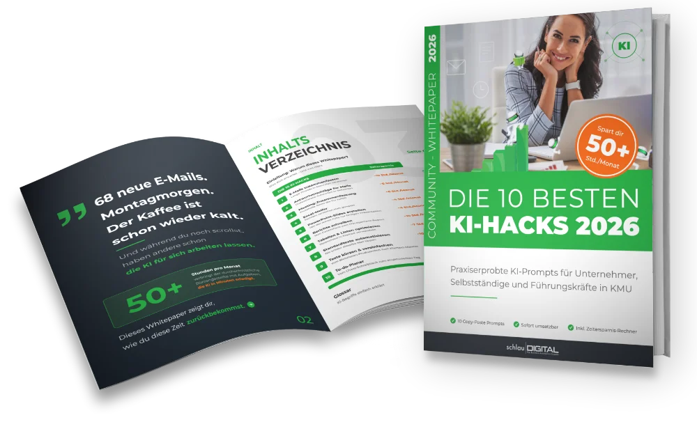 30 E-Mails in 15 Minuten abarbeiten, Meetings in Sekunden zusammenfassen, 100-Seiten-Dokumente in 2 Minuten analysieren: In dieser Woche lernst du 13 erprobte KI-Hacks, die deinen Arbeitsalltag sofort verĂ€ndern. Am Freitag rechnest du nach â und wirst ĂŒberrascht sein, wie viele Stunden du zurĂŒckgewonnen hast.